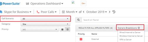When All call scenario is selected the scenario breakdowns menu appears in the results table.
